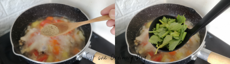 โรยพริกไทยและคึ่นฉ่าย
